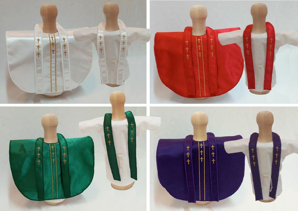 Doplněk produktů jsou čytři kněžské štoly na figurku v albě (lze oblékat přes ornát i přes samotnou albu)