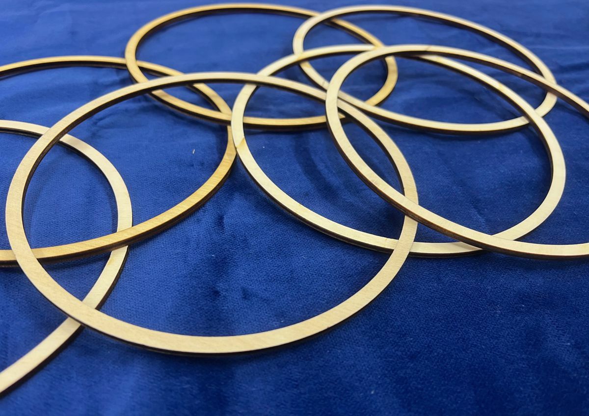 Kruh na lapač snů z topolové překližky, tloušťka překližky 3-4 mm, šířka kroužku 5 mm