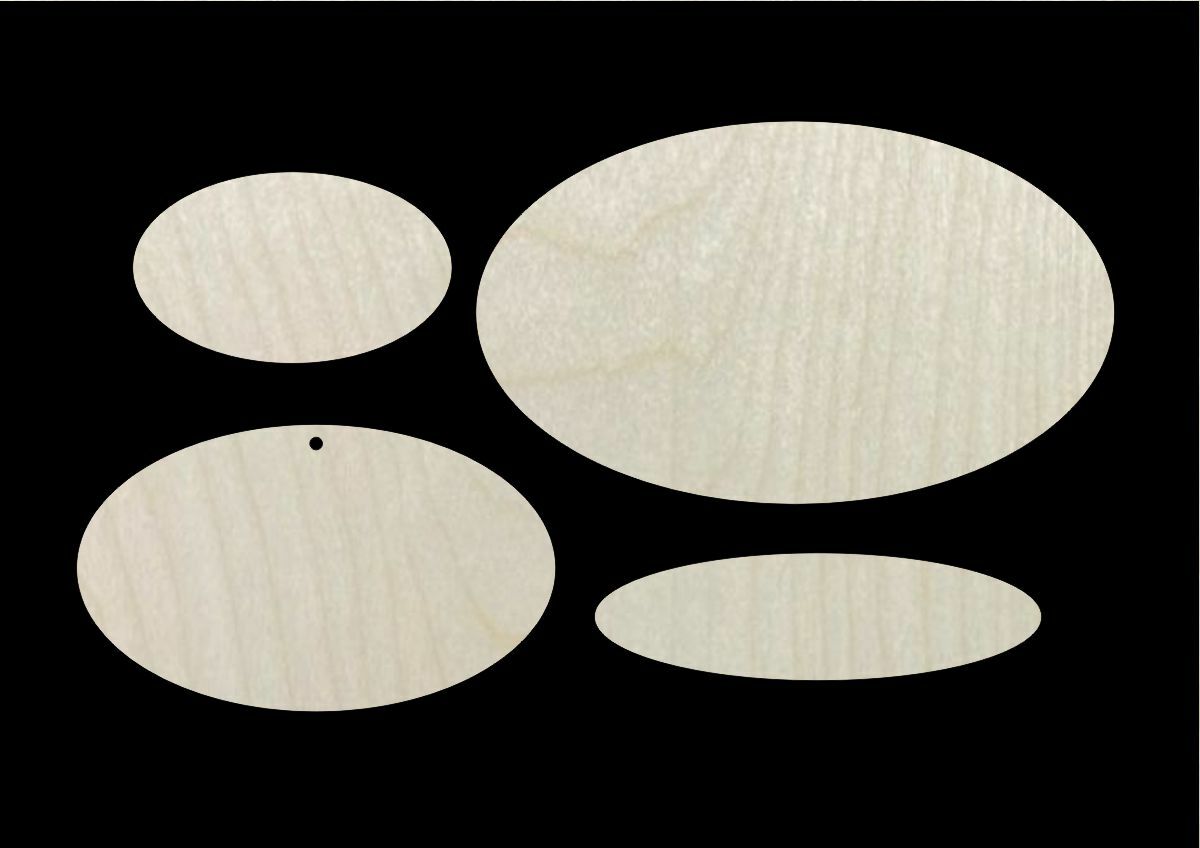 Vyřezáno laserem z topolové překližky (tloušťka materiálu je 3 mm), průměr dírky je 4 mm . Rozměr, který udáváme ve výběru, je delší průměr tvaru.