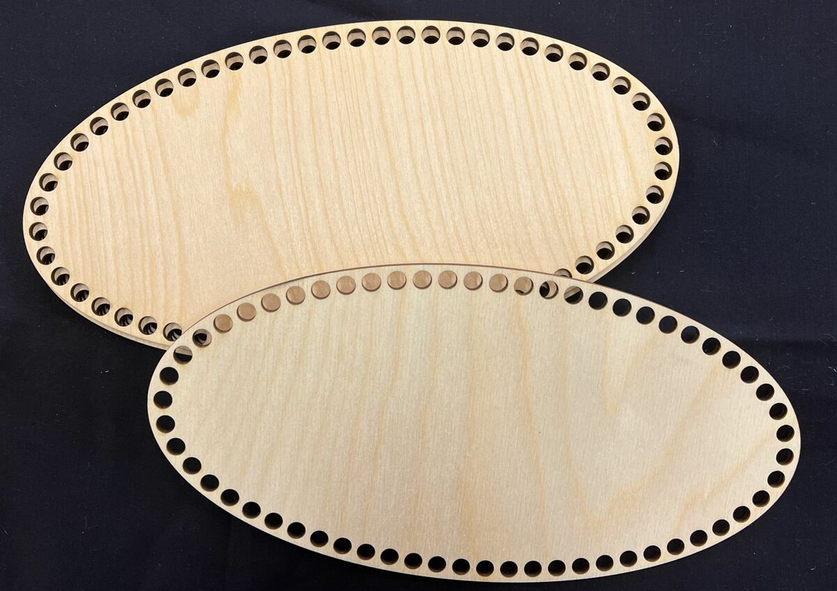 Elipsové výřezy na háčkované košíky velikost 25x17 cm.