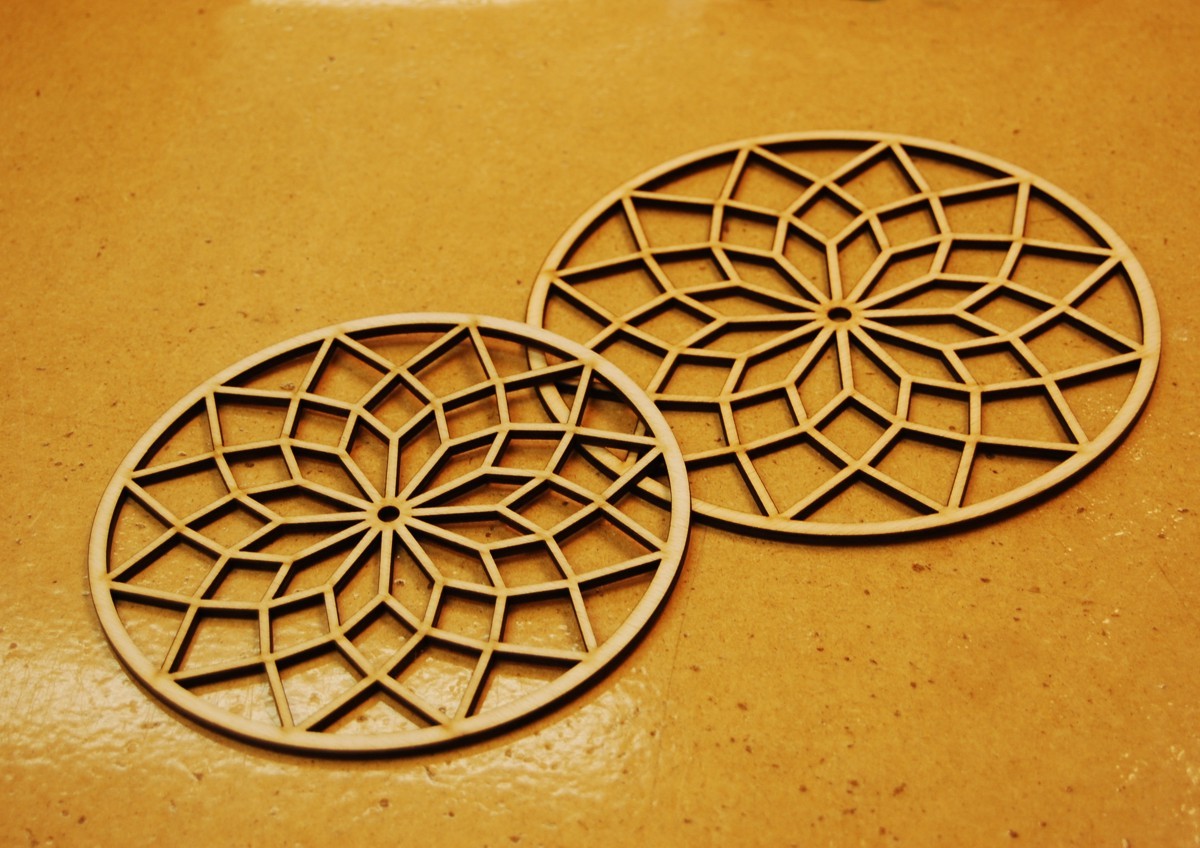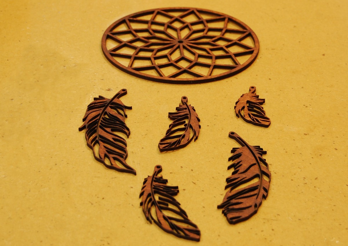 Kruh se vzorem HVĚZDA navýrobu lapače snů je vyřezáno laserem z překližky (tloušťka materiálu je 3 mm)