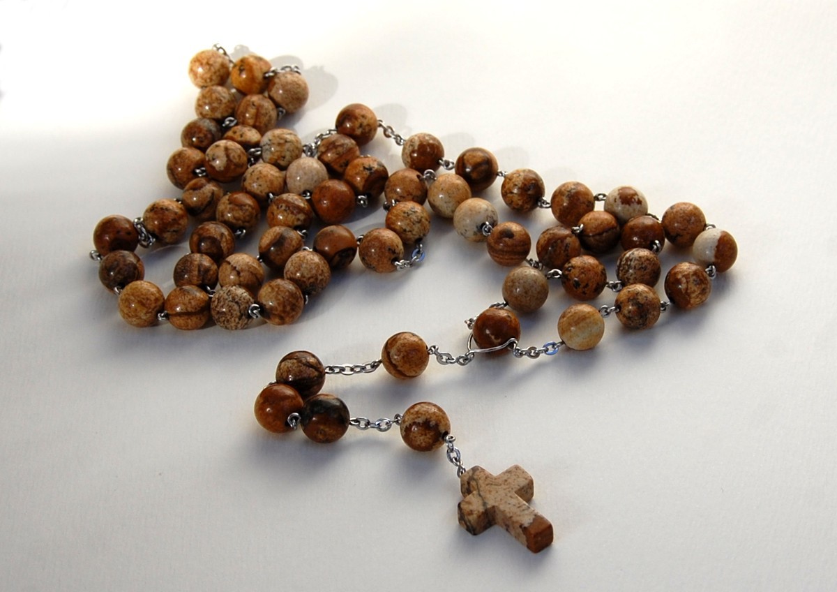 růženec je masivní, je na něm dobře vidět kresba a struktura kamene. Jde nosit na krku, obvod růžence je cca 65 cm (lze snadno přetáhnout přes hlavu). Průměr korálků je 8 mm. Tato varianta je vhodná i pro člověka s horší citlivostí v prstech
