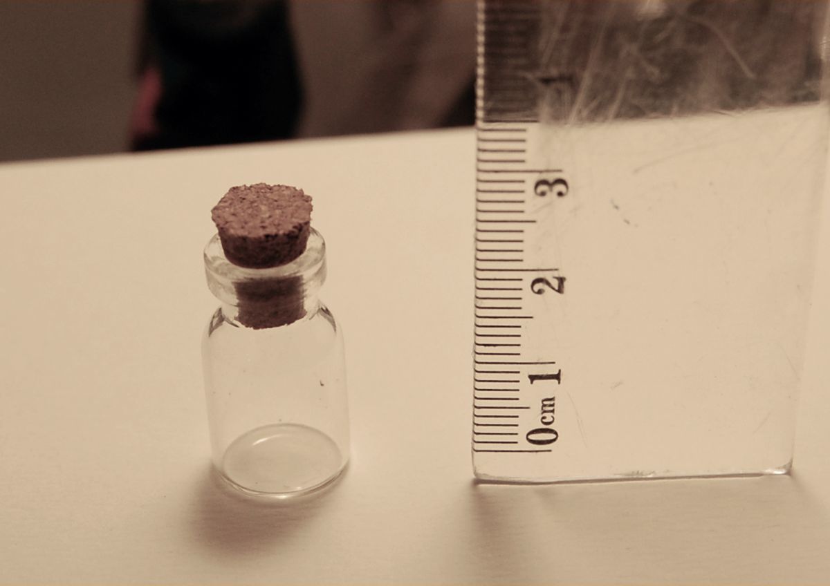 Variantu bez štítku ze použít také jako přívesek, po naplnění např. drobnými mušličkami nebo sypkým materiálem lze přivázat např. na koženou šňůrku. Pro nošení na krku doporučujeme špuntík v lahvičce zajistit lepidlem.