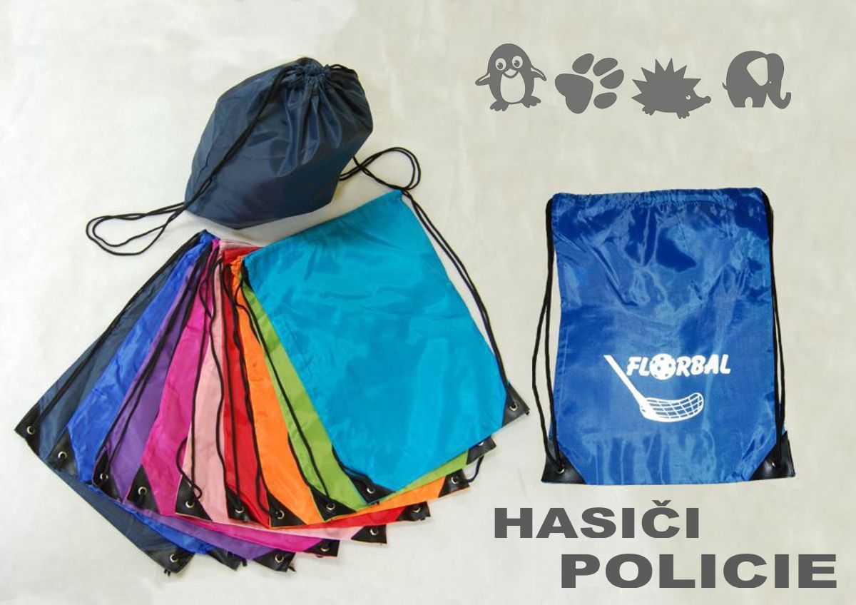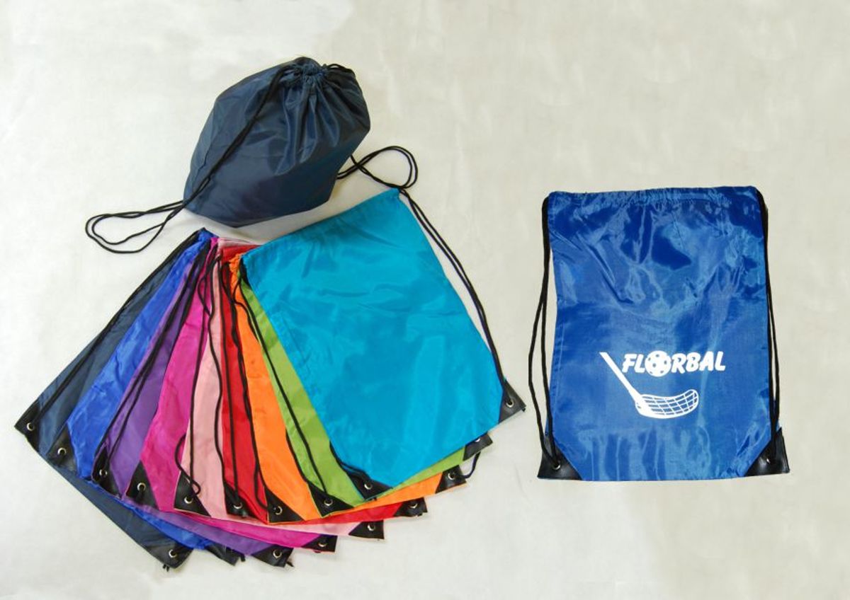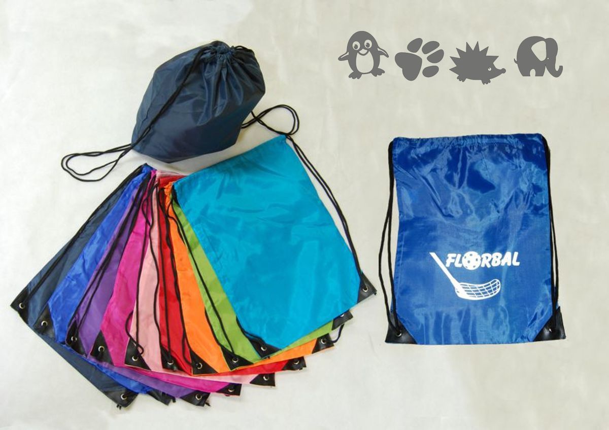Lehoučký, praktický. Šňůrky na zatažení slouží zároveň pro nošení na zádech nebo přes rameno. Vhodné pro děti na oblečení, do tělocvičny, na obuv (třeba na bačkůrky), nebo potřeby na kreslení, prázdný se vejde do kapsy.