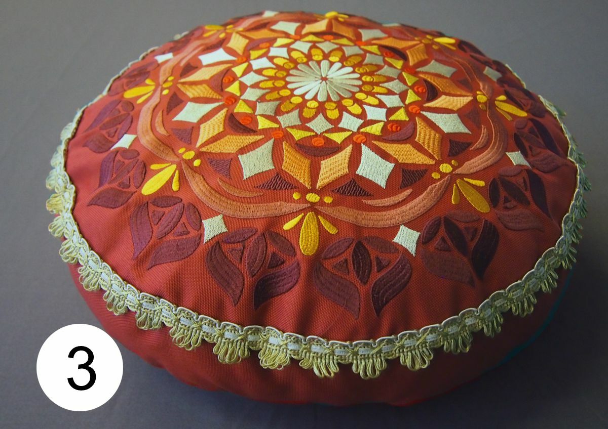 Polštářek s autorskou výšivkou "Mandala" (autorka Martina Bogarová)