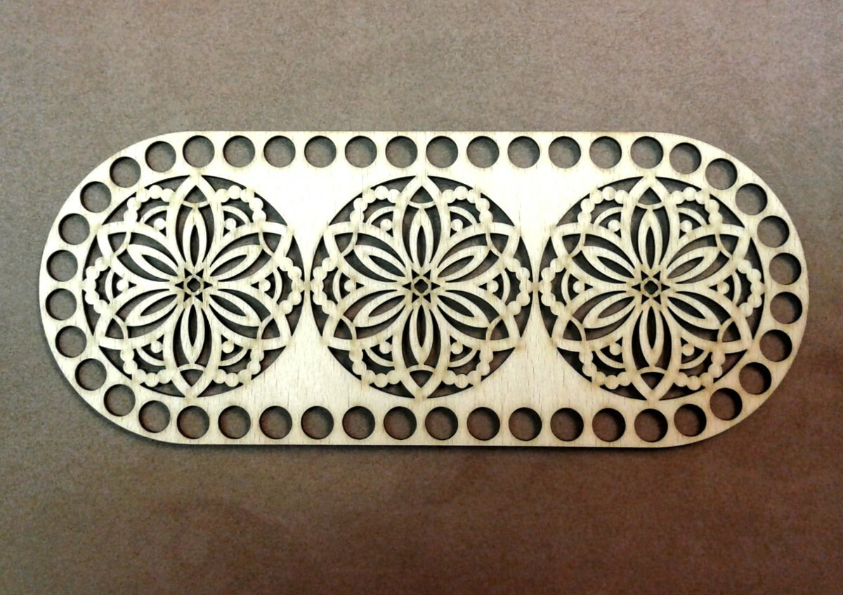 Vyřezáno laserem z překližky. Tloušťka materiálu je 3-4 mm.
