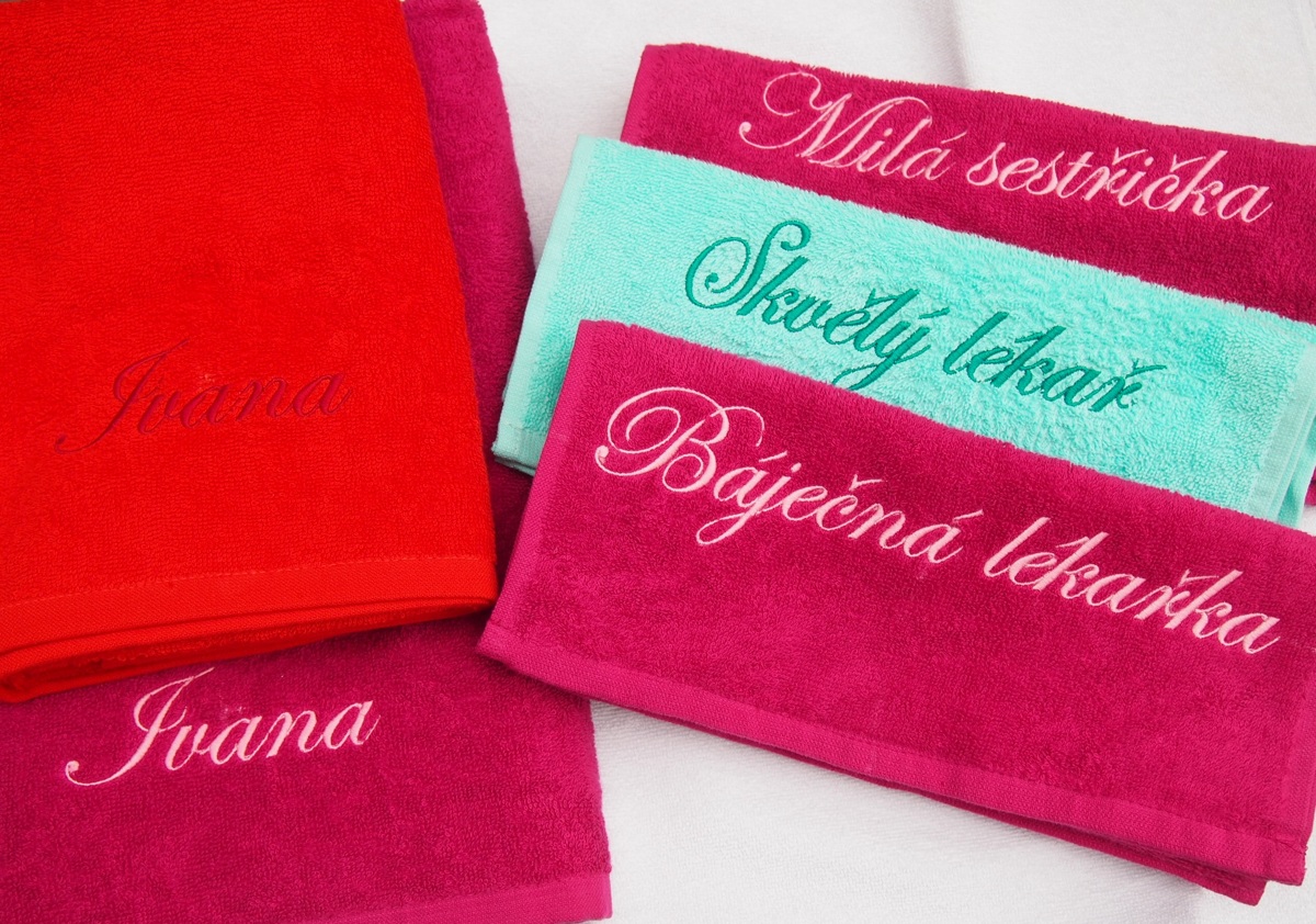 • kromě jména nebo monogramu můžeme vyšít např: maminka, tatínek, babička, dědeček, strýček, tetička, miláček, láska, pro maminku, apod.