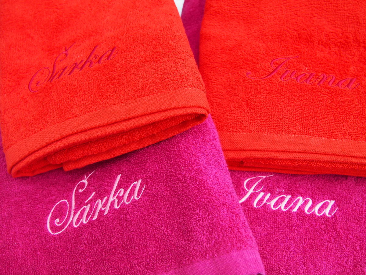 Bavlněná osuška s vyšitým monogramem, nebo jménem.