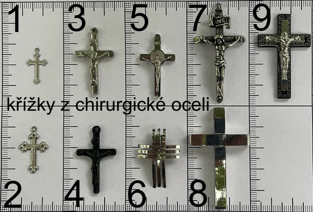 8 - veliký, strohý, moderní křížek z chirurgické oceli s vyklenutou horní plochou, rozměry křížku cca 45x30 mm (hodí se k velkému růženci)
