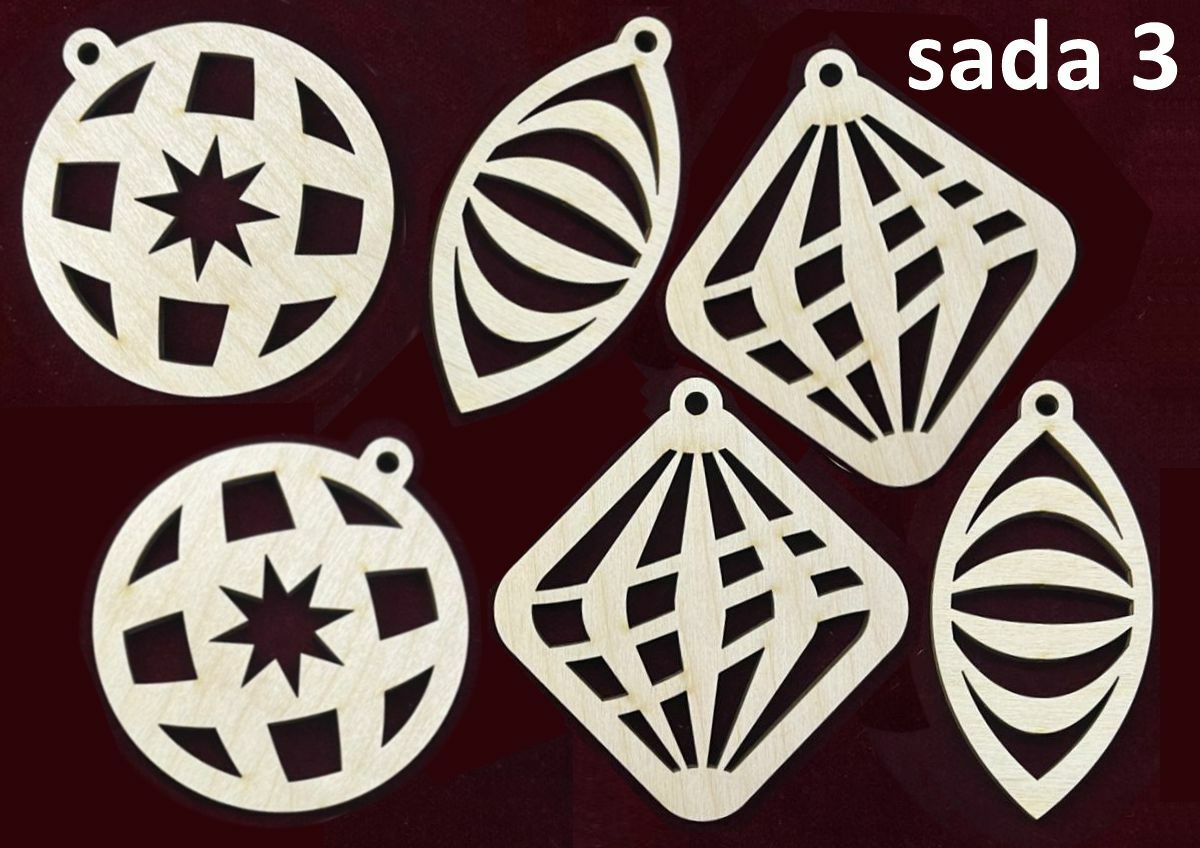 Ozdoby jsou řezané ze dřeva, tloušťka 3-4 mm, nejsou nijak povrchově upravené. Můžete nechat vyniknout jejich přírodní krásu nebo je barvit, mořit mořidly, pomalovat pastelkami nebo fixkami či ozdobit třpytivými glitry.