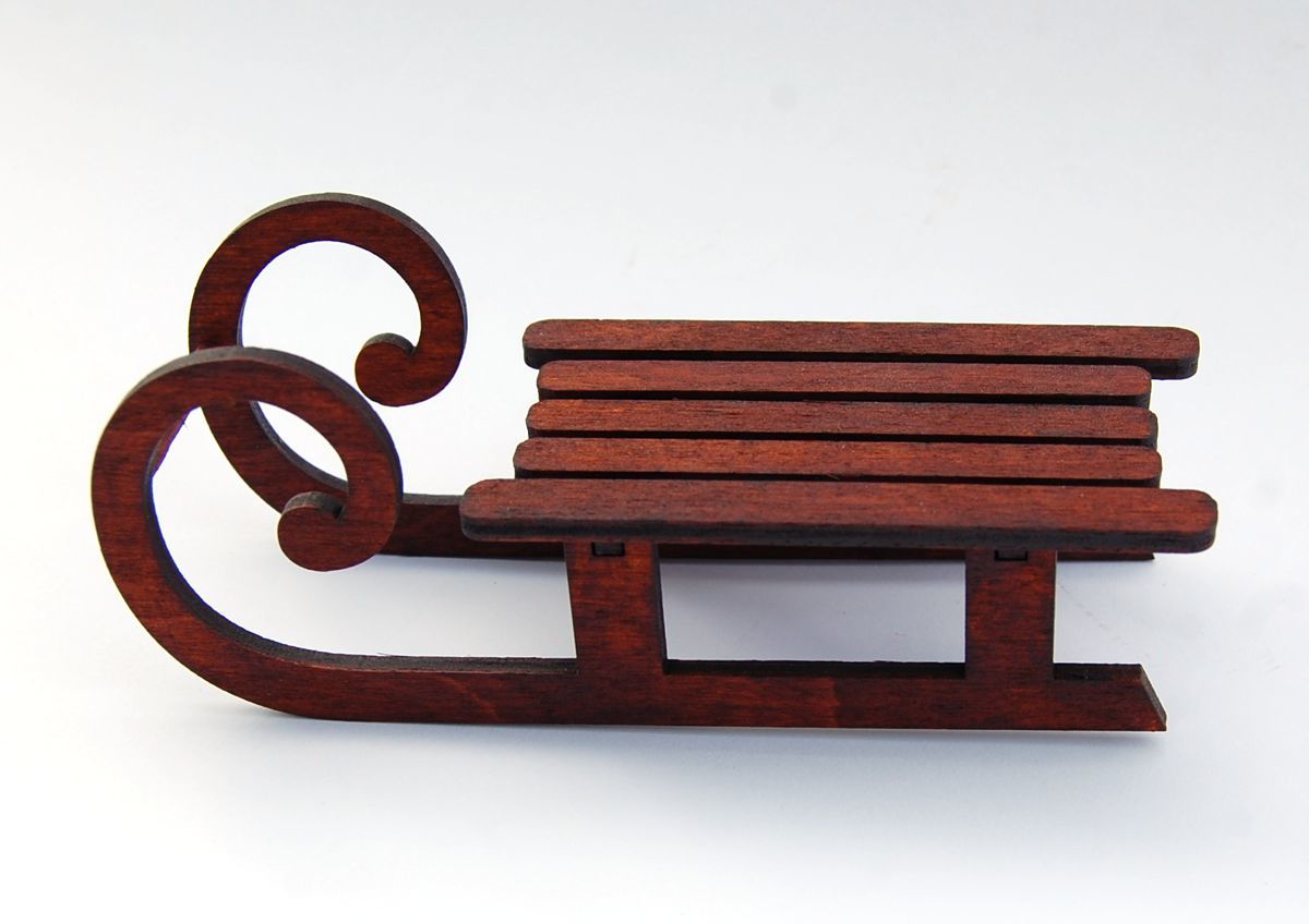 Sáňky jsou vyrobené z bukové překližky. Neobsahují kovové části.