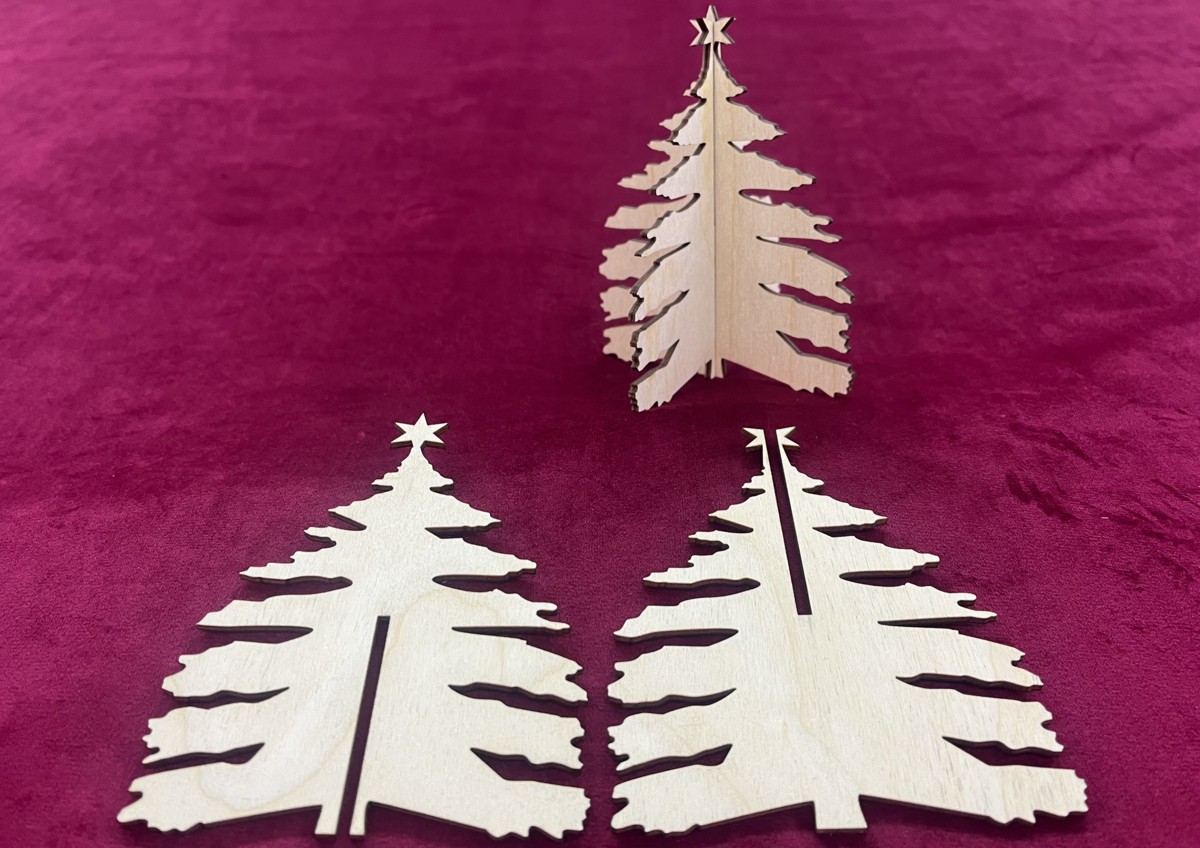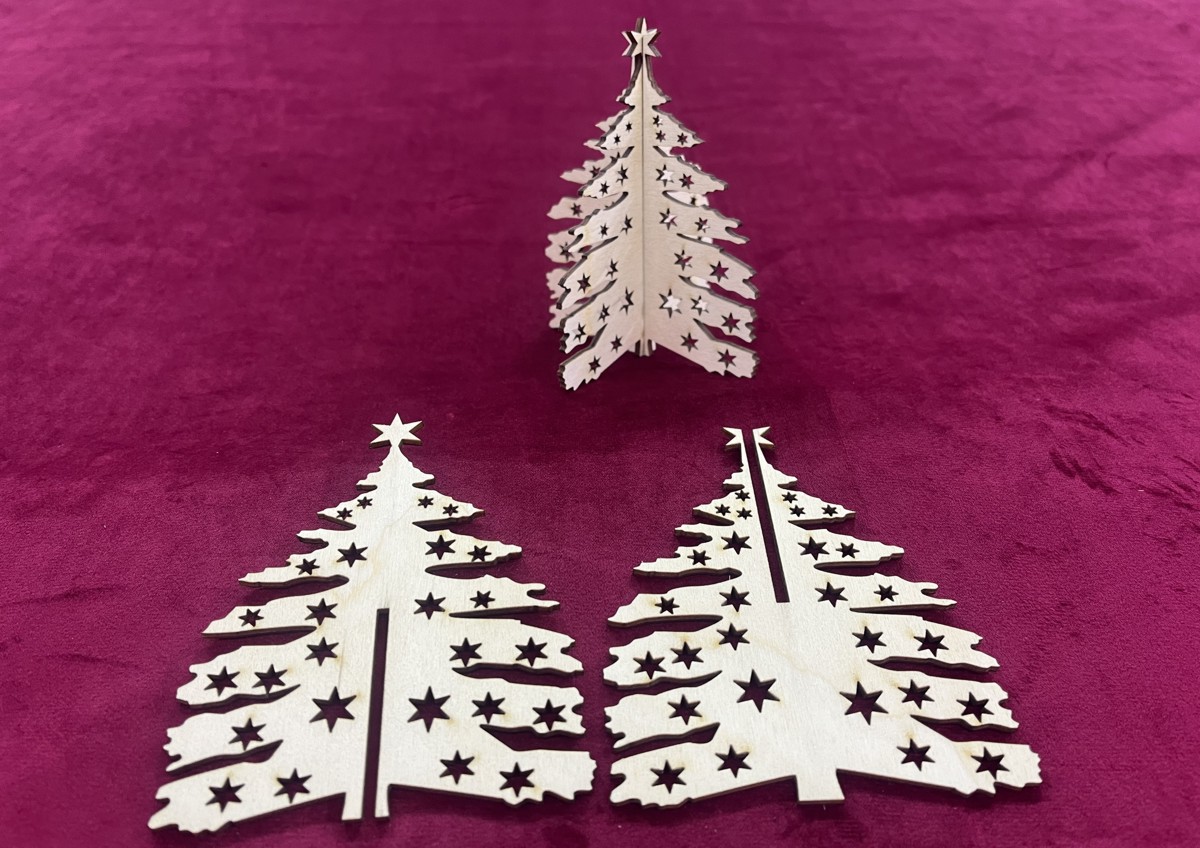 Sestavená ze dvou dílů vyřezaných z dřevěné překližky o tloušťce 3 mm.