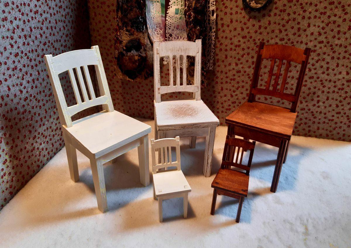 Varianta 1:6 má skryté spoje a robustnější konstrukci (sedák a nohy jsou silnější) , proto je také cena vyšší. Typově jsou židle v obou měřítkách velmi podobné.